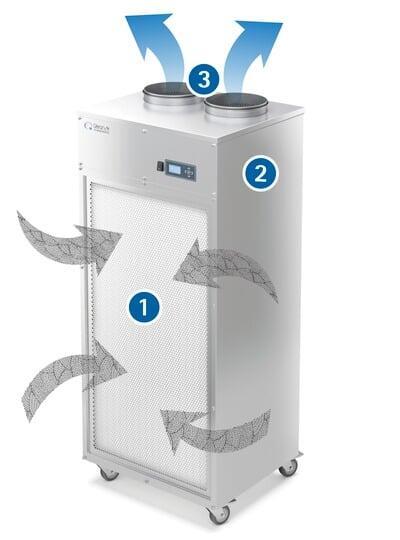 Few air filter devices meet all the features listed above. However, after working with HEPA air filtering systems for many years, we believe we’ve found a unique air filtering system that adapts to a wide range of commercial and industrial settings, offering versatility and superb filtering capabilities without breaking the bank.